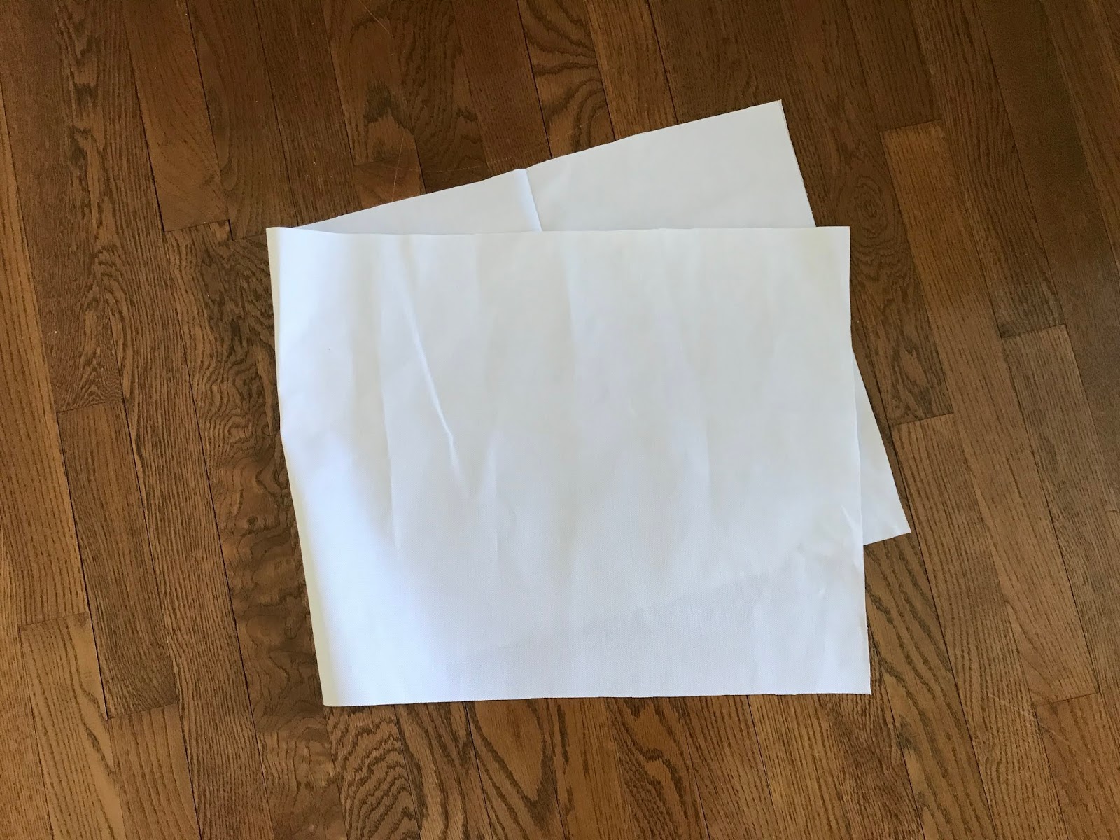 Fold by matching the shorter side (15 1/2”) together. Pin together as shown.